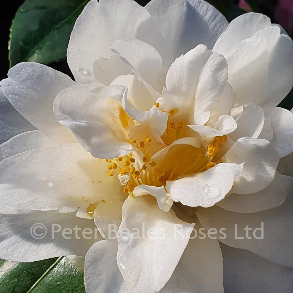 Flowers large size, semi-double, white, February to April. Ht.1.5mt.(4.5ft.). Grow in sun or part shade and moist, fertile, well-drained, acidic soil. Good in containers.