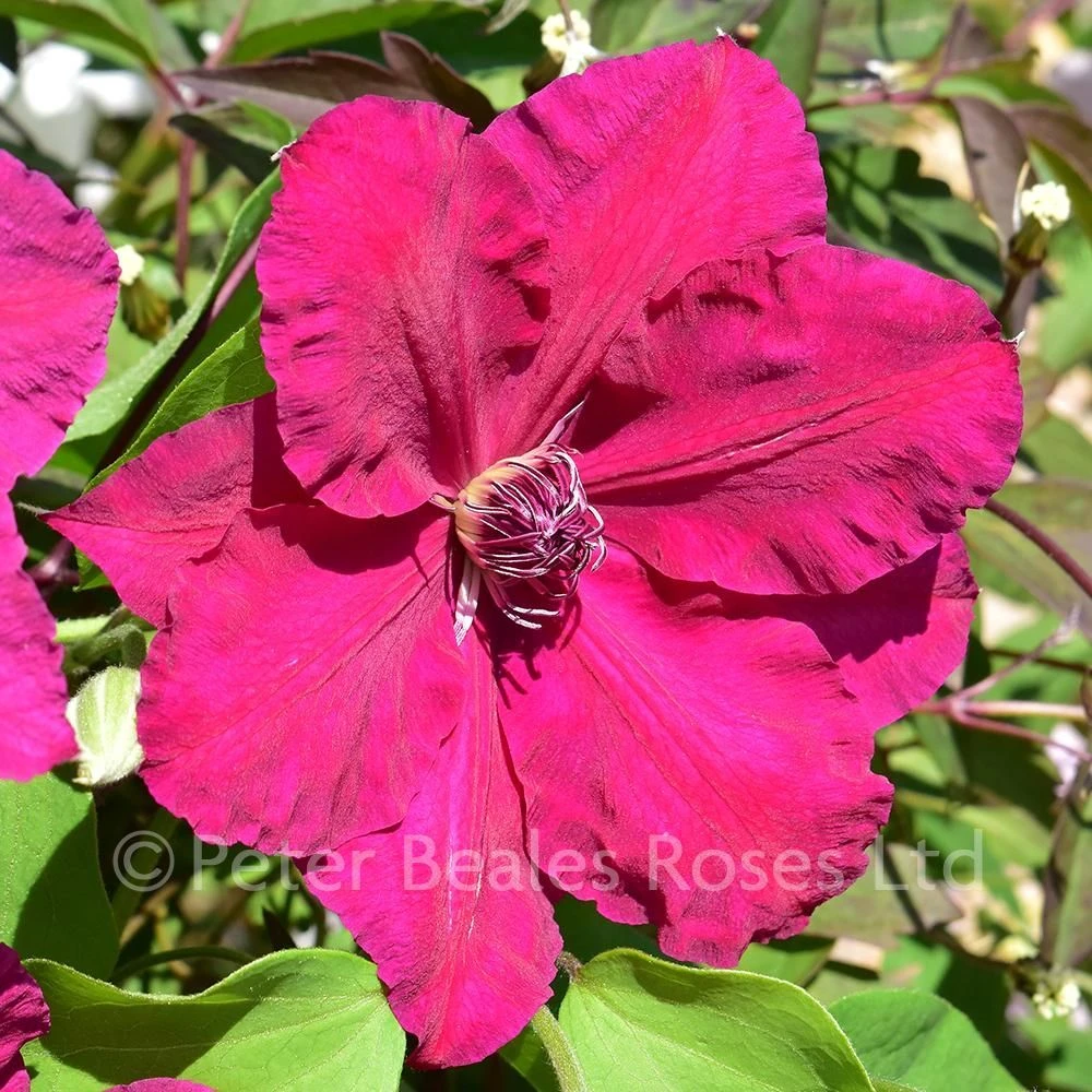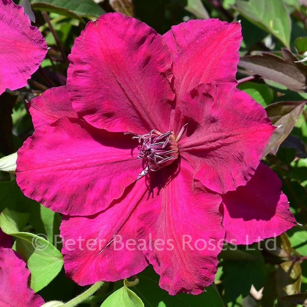 Rich, cerise-coloured flowers with dark pink anthers and wavy margins. May to September. Hard prune. Any aspect except full sun. Good for containers.