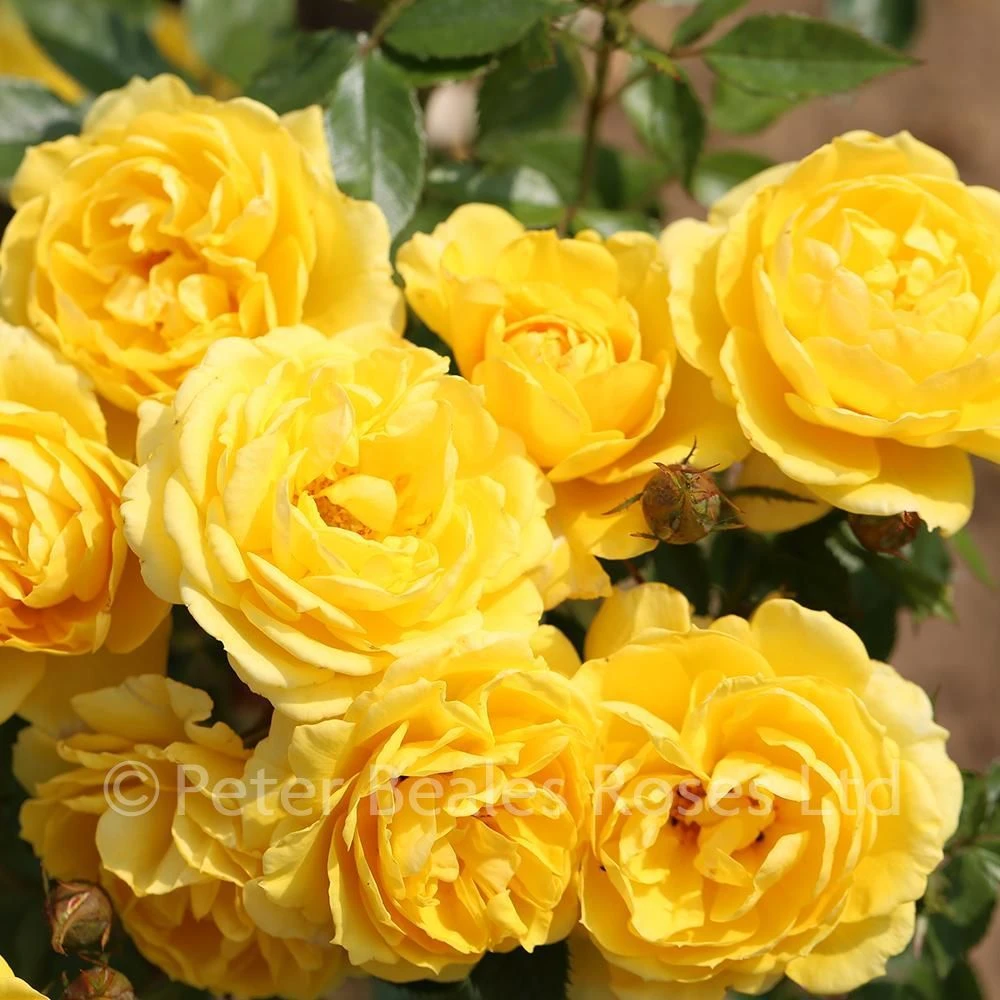 (Patio Shrub) ‘Sun Hit’. Masses of semi-double, primrose-yellow flowers on a tidy compact bush. Suitable to grow in a container. Makes a lovely gift. Bred by Poulsen.