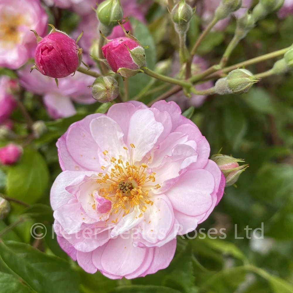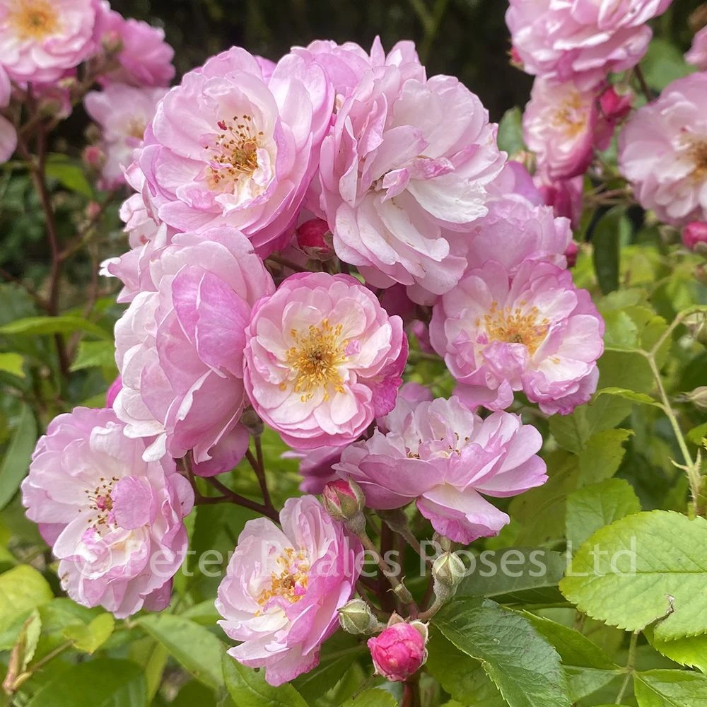 (Patio Rambler) Large clusters of small, semi-double to double, lavender-pink flowers produced on a tidy plant. Repeat flowering. Ideal for a smaller space. Good disease resistance. Hardy. Suitable for hedging. Award winning variety. Bred by Kordes.