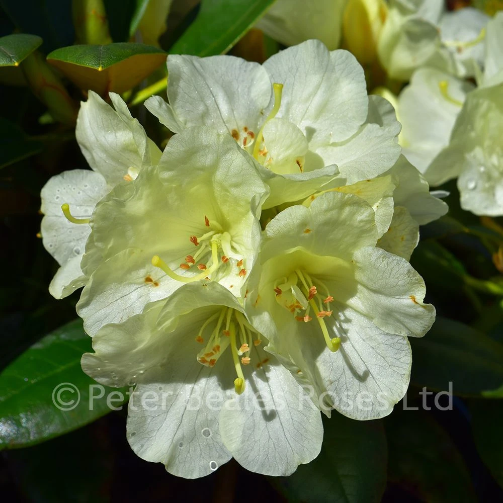Compact evergreen with attractive dark green leaves. Stunning clusters of wavy-edged, light yellow flowers. May. Ht.1.3mt.(4ft.). Grow in moist, fertile, well-drained acid soil. Good for containers or woodland borders.