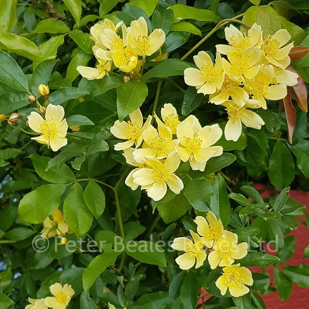 (Species) Diameter of the yellow flowers is larger than lutea but single and more sweetly scented. Foliage is similar but young shoots and leaves are copper tinted.